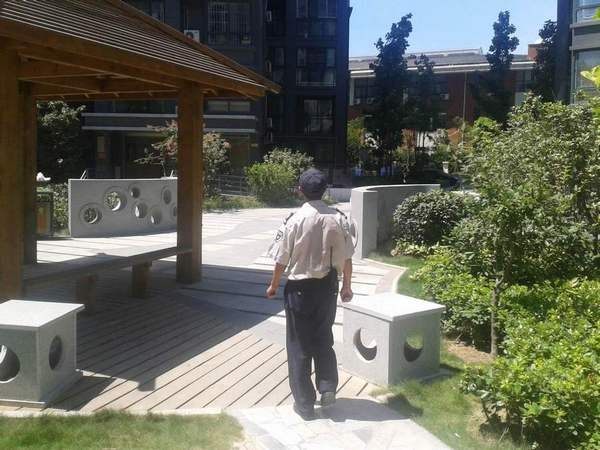 简单的值班亭、一张桌子、一把遮阳伞就是门岗的事情阵地,一股股热风带着水泥地面的热气迎面吹来,就象置身蒸笼一样。他们认真盘查挂号外来人员和车辆,耐心地进行引导,时刻维护着小区门前的正常秩序。