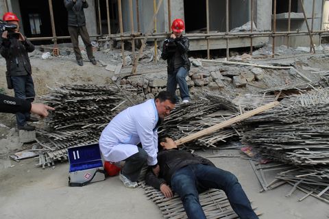 包河区建筑施工宁静事故应抢救援演练在京华世家举行